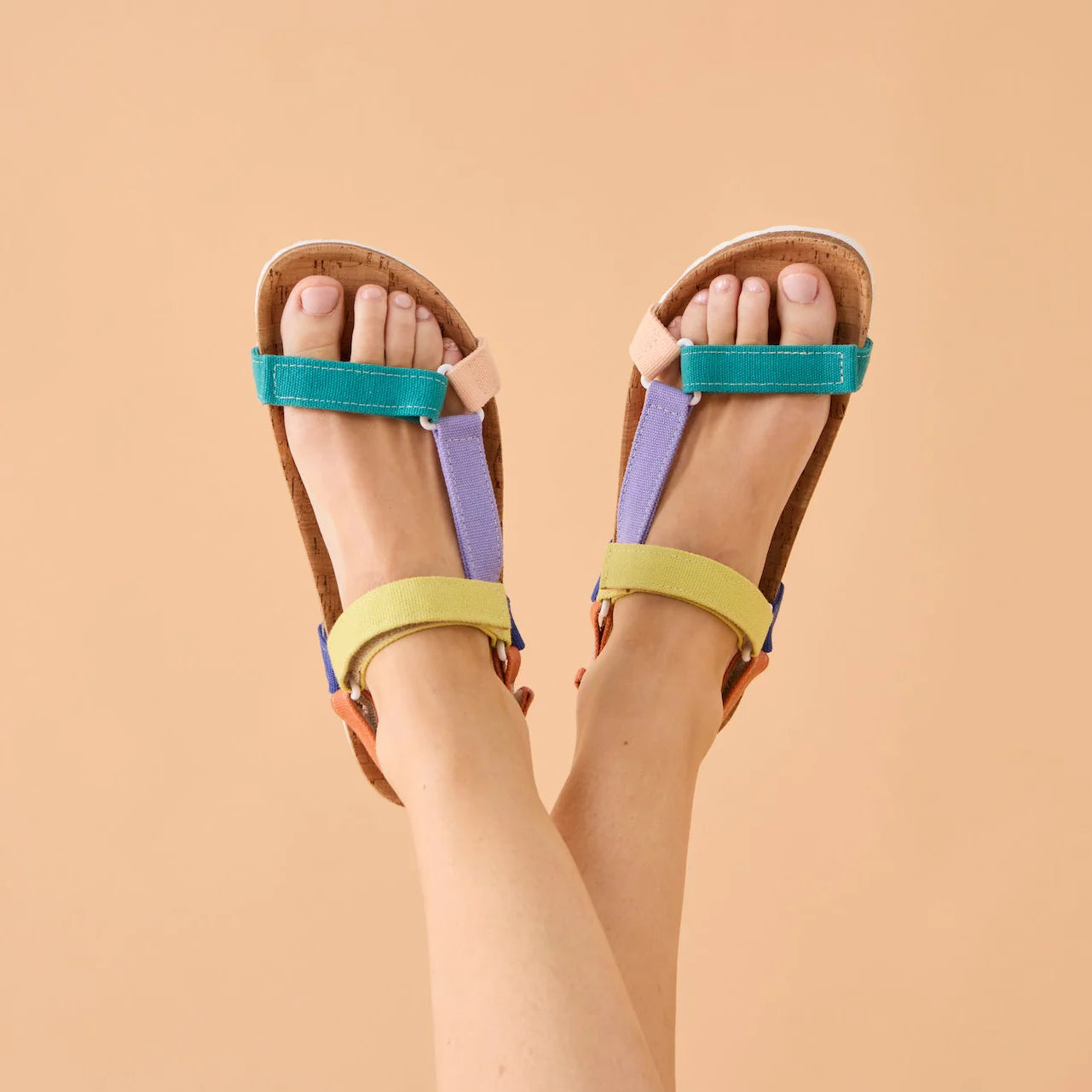 Nachhaltig, vegan und superbequem. Inspiriert von der klassischen Trekkingsandale ist diese luftige Sommersandale in knalligen Farben perfekt an warmen Sommertagen. Das Obermaterial besteht aus Biobaumwolle, das Fußbett ist mit Kork bezogen. Die Sohle ist aus rutschfestem EVA und die Klettverschlüsse sorgen dafür, dass die Sandale schnell verschließbar und verstellbar ist und nahezu an jeden Fuß passt.
