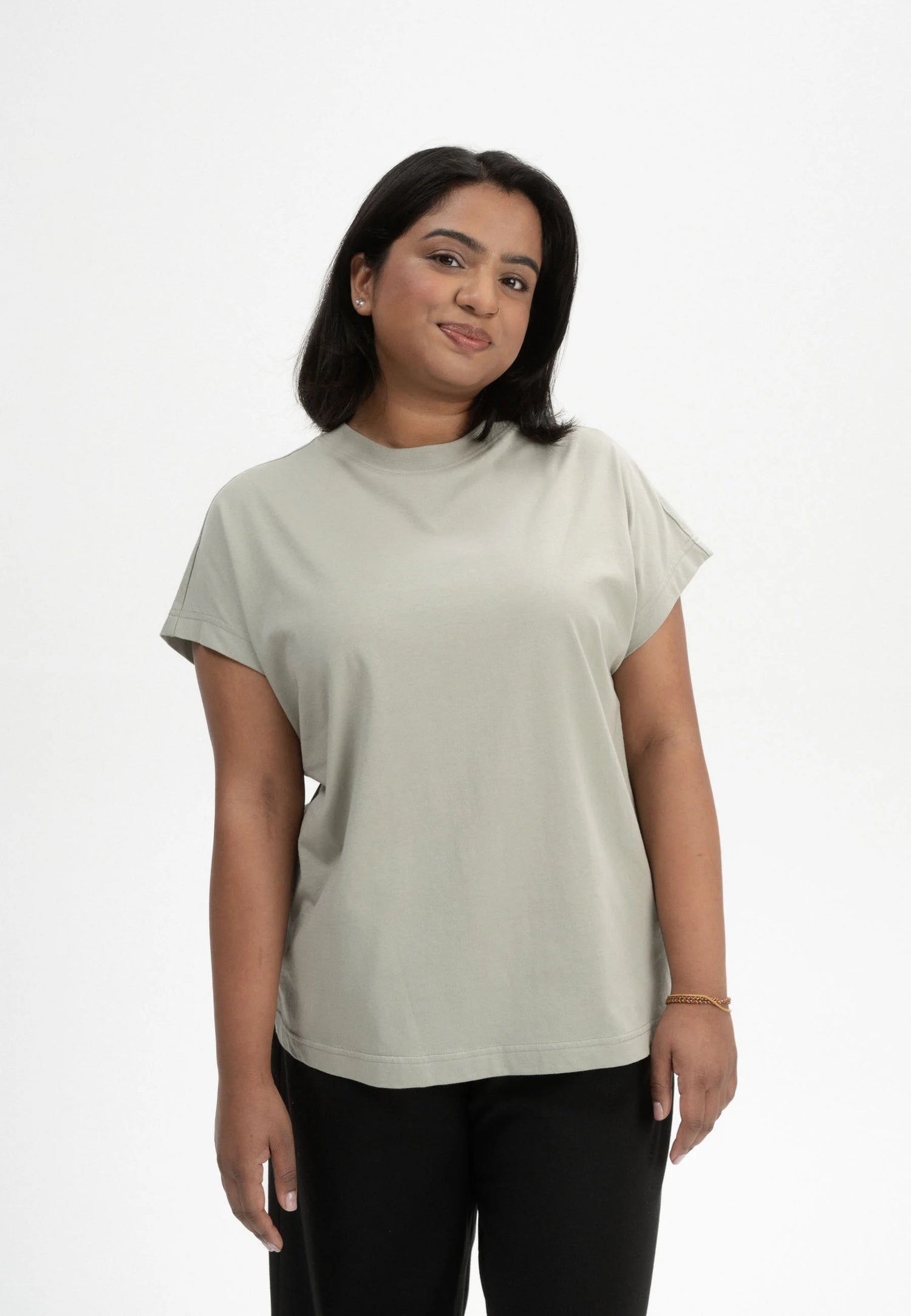 Das T-Shirt Madhu besticht mit Fledermausärmeln und seiner modernen und lässigen Passform. Der hohe und runde Ausschnitt, feine Rippbündchen und Steppnähte runden den Look ab.