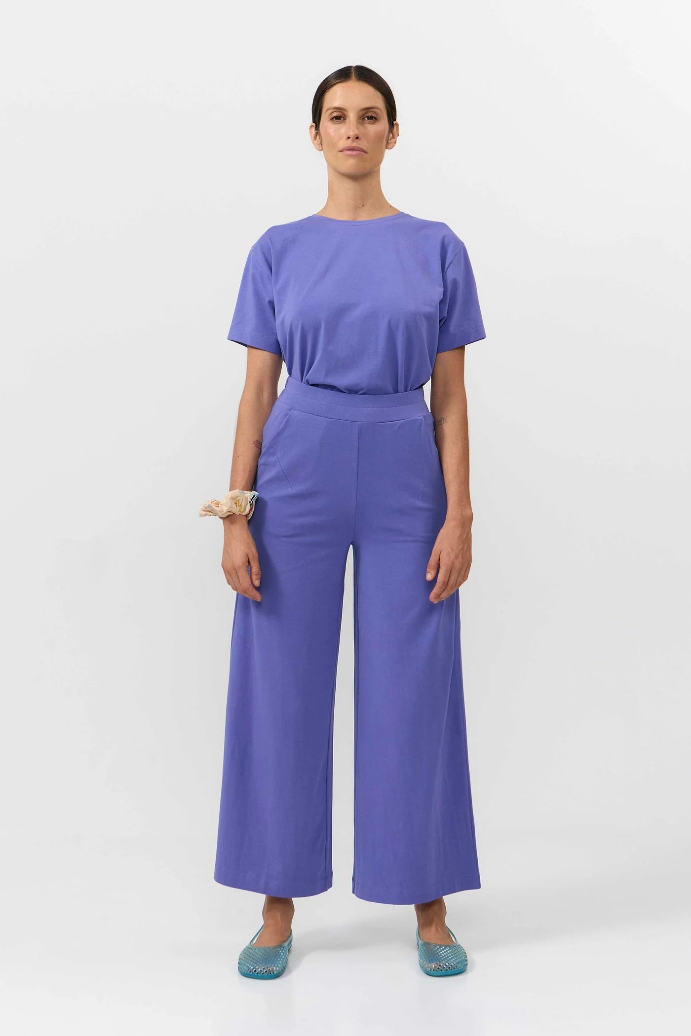 Weit geschnittene Jerseyhose mit Vordertaschen und elastischem Bund für optimalen Sitz.
